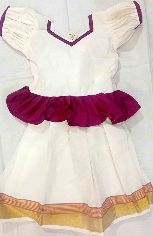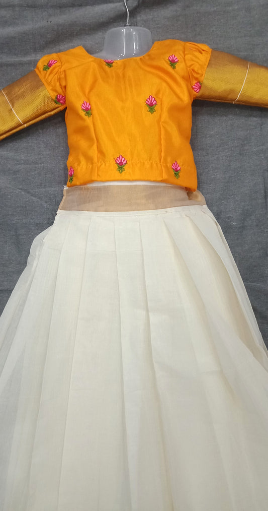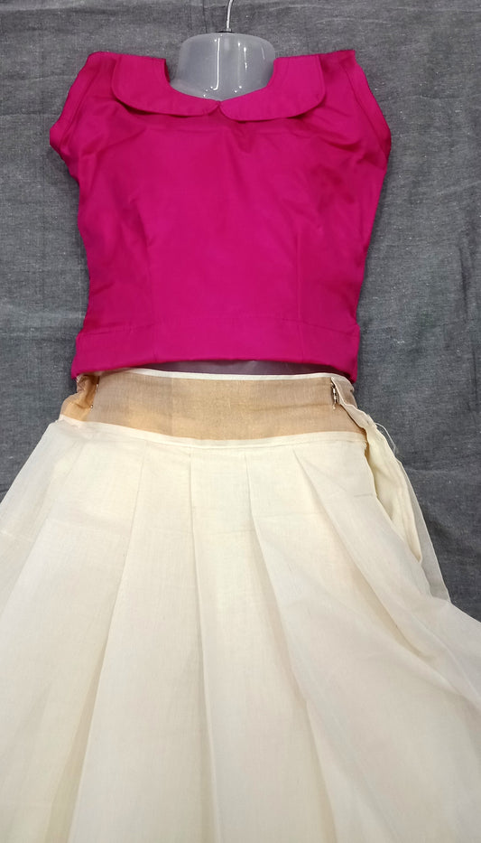Designer type kerala style cotton pattu pavada lehenga for girls