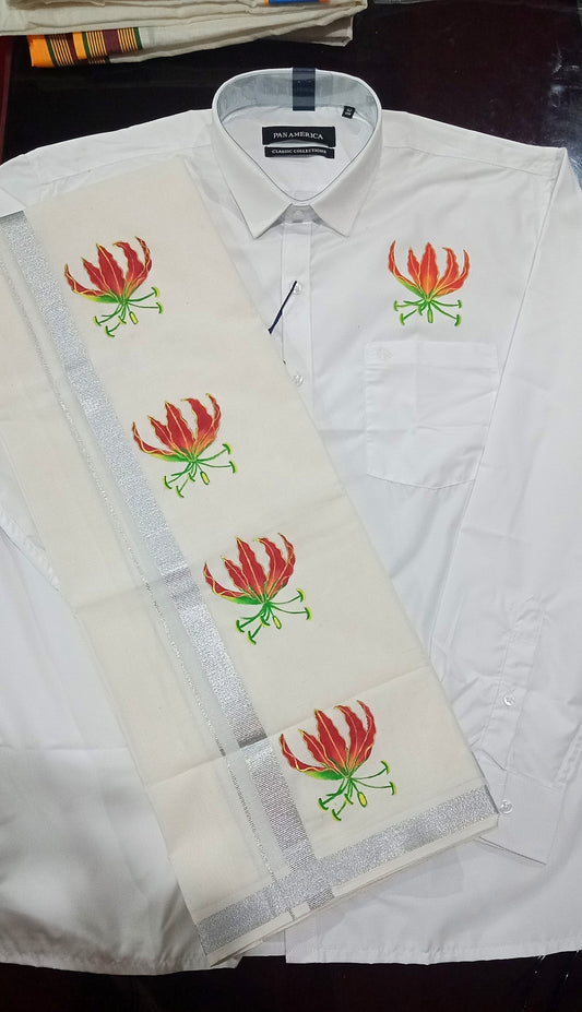 Vishu special Kannikonna design hand mural painting on green silk shirt