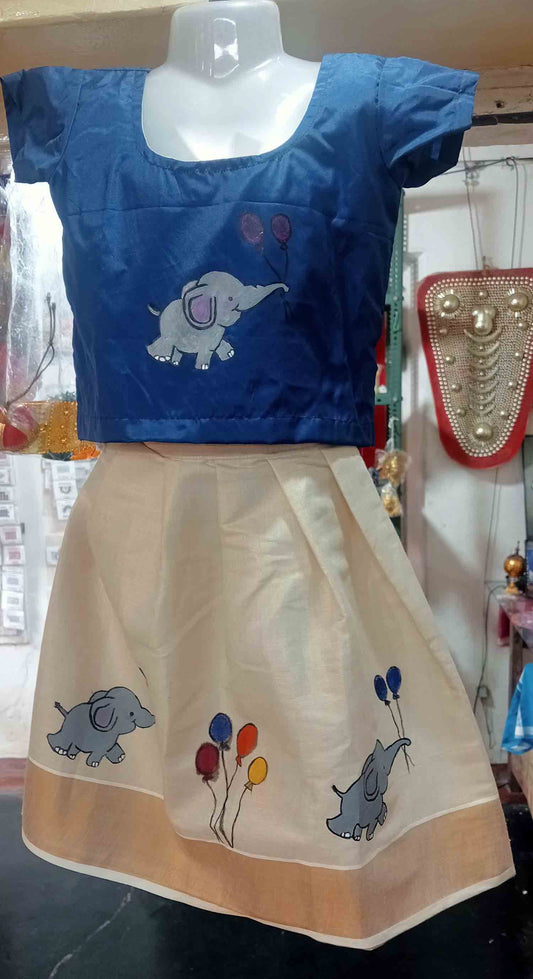 Elephant and balloon designer hand mural painting kerala pattu pavada for kids