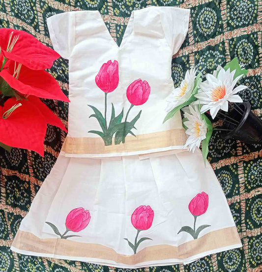 Flower design hand mural painting kerala pattu pavada at low price for kids