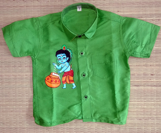 Cute Krishna design hand mural painting kids green shirt and munduRegular price Rs. 1,399.00Regular priceUnit price / per