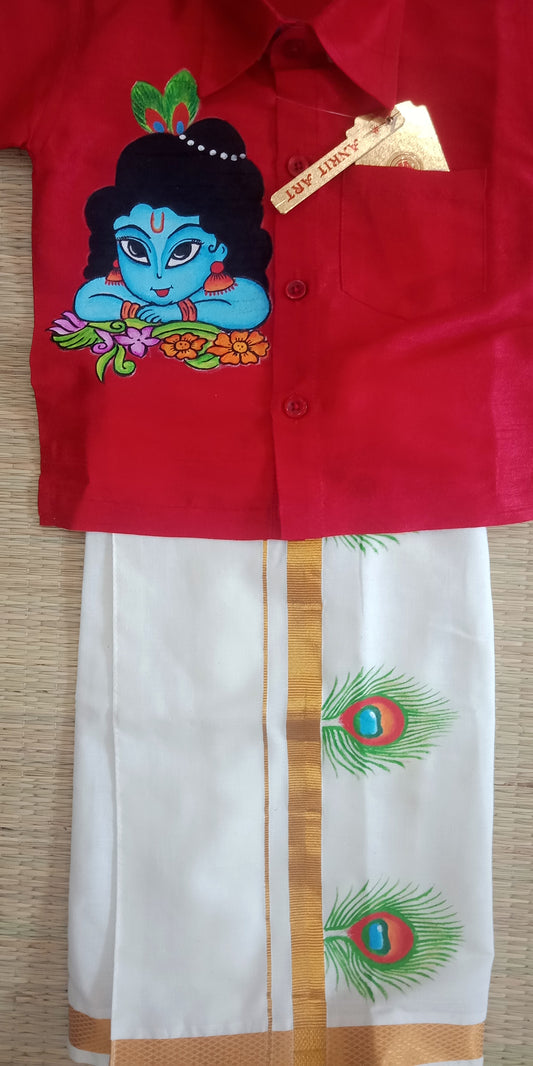 Krishna with pot hand mural painting on kids red shirt and munduRegular price Rs. 1,429.00Regular priceUnit price / per-