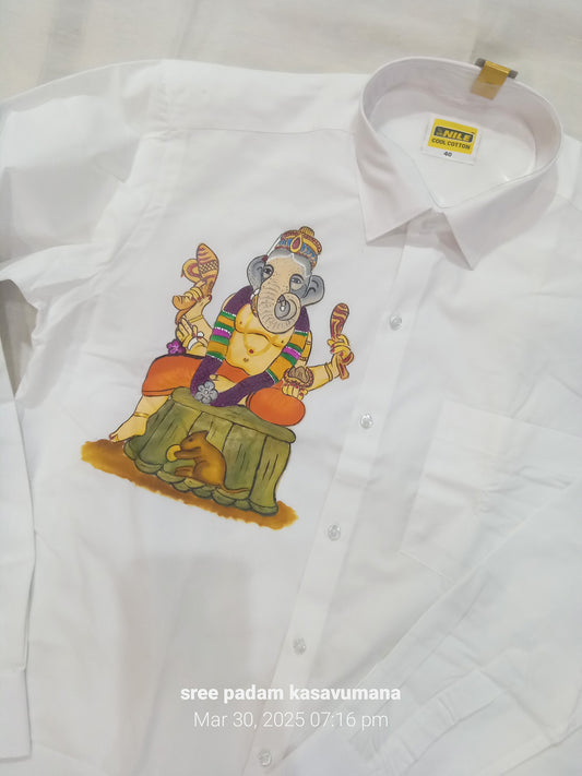 Cute ShivaParvathi design hand mural painting on white cotton shirt