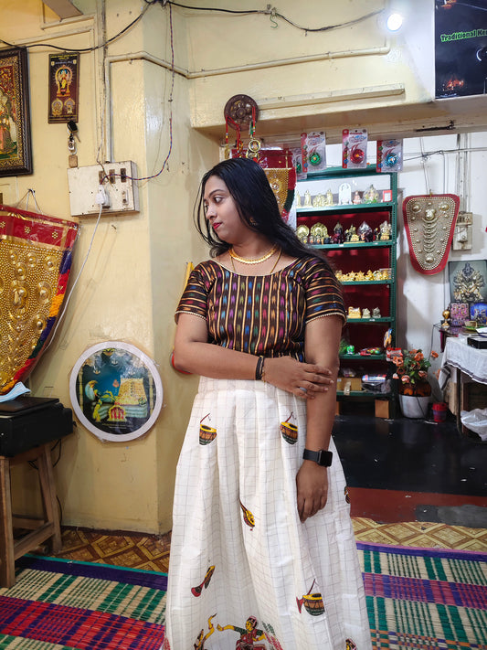 Designer kathakali with boat print kerala tissue pattu pavada with blouse for women