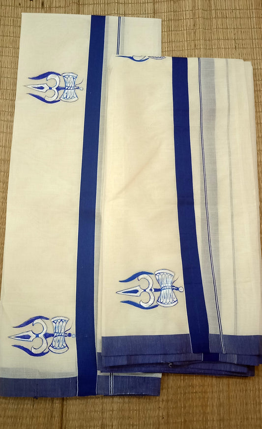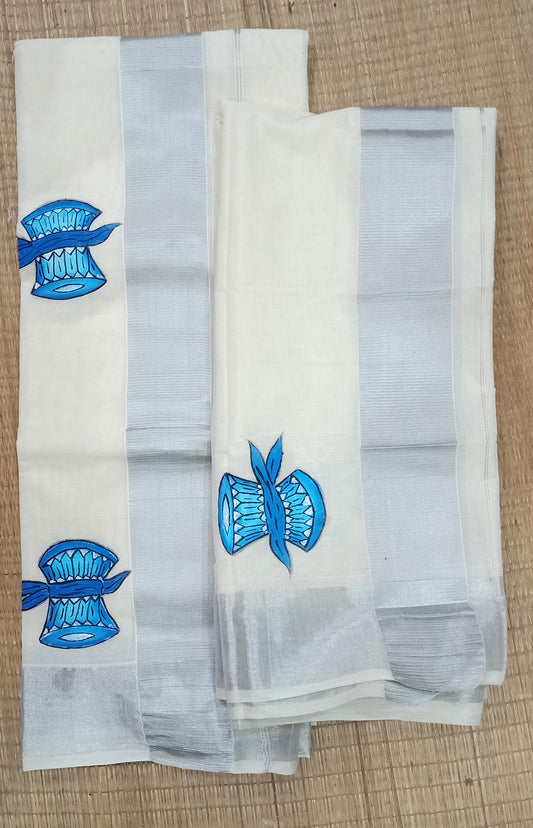 Shiva Dambaru hand mural painting on silver kara set mundu