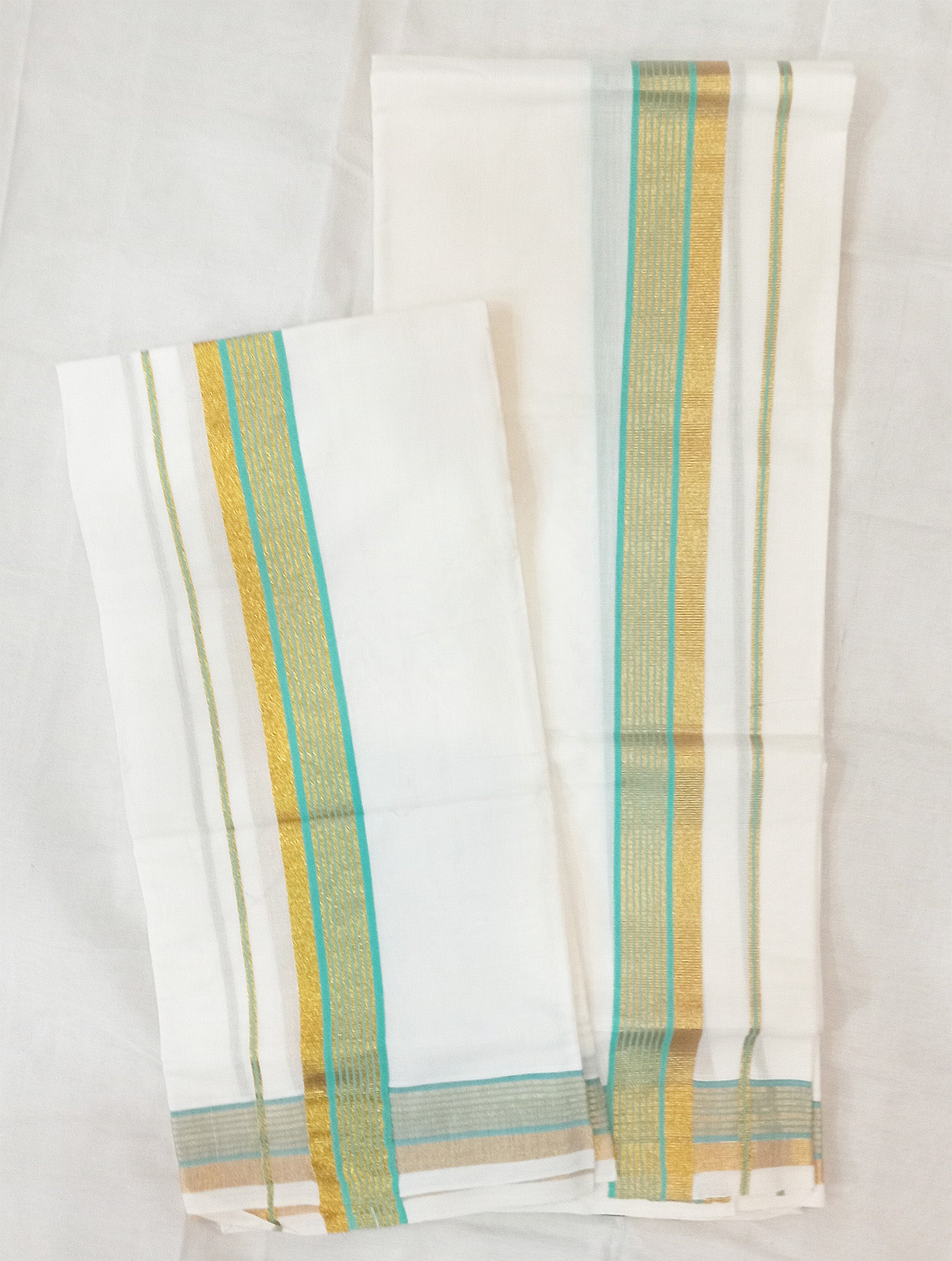 Experience traditional fashion with this beautiful Big Green and Golden Kara Kerala Kasavu Single Setmundu for women. Made of high-quality fabric, this setmundu offers both comfort and style. Perfect for any occasion, get yours at the lowest rates.
