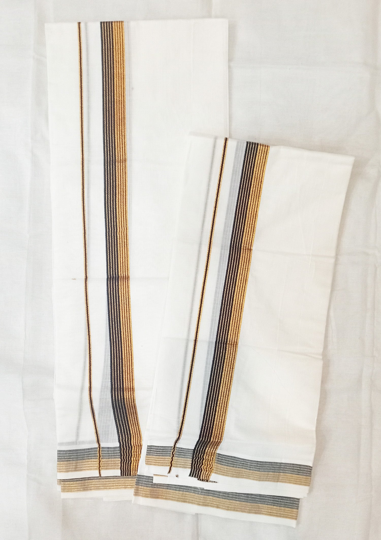 This Black and Golden Kara Kerala Kasavu Single Setmundu for women offers a unique blend of traditional and modern design, featuring a bold black and golden kara border. Made with premium quality materials, this setmundu brings an elegant touch to any occasion. Enjoy the lowest rates without compromising on style.