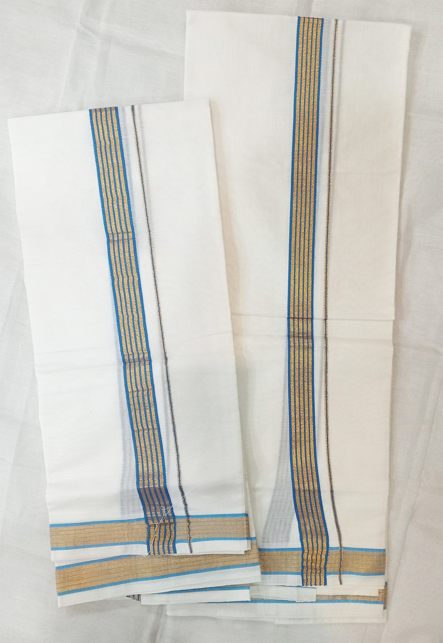 Blue kasavu stripes kerala kasavu single setmundu for women