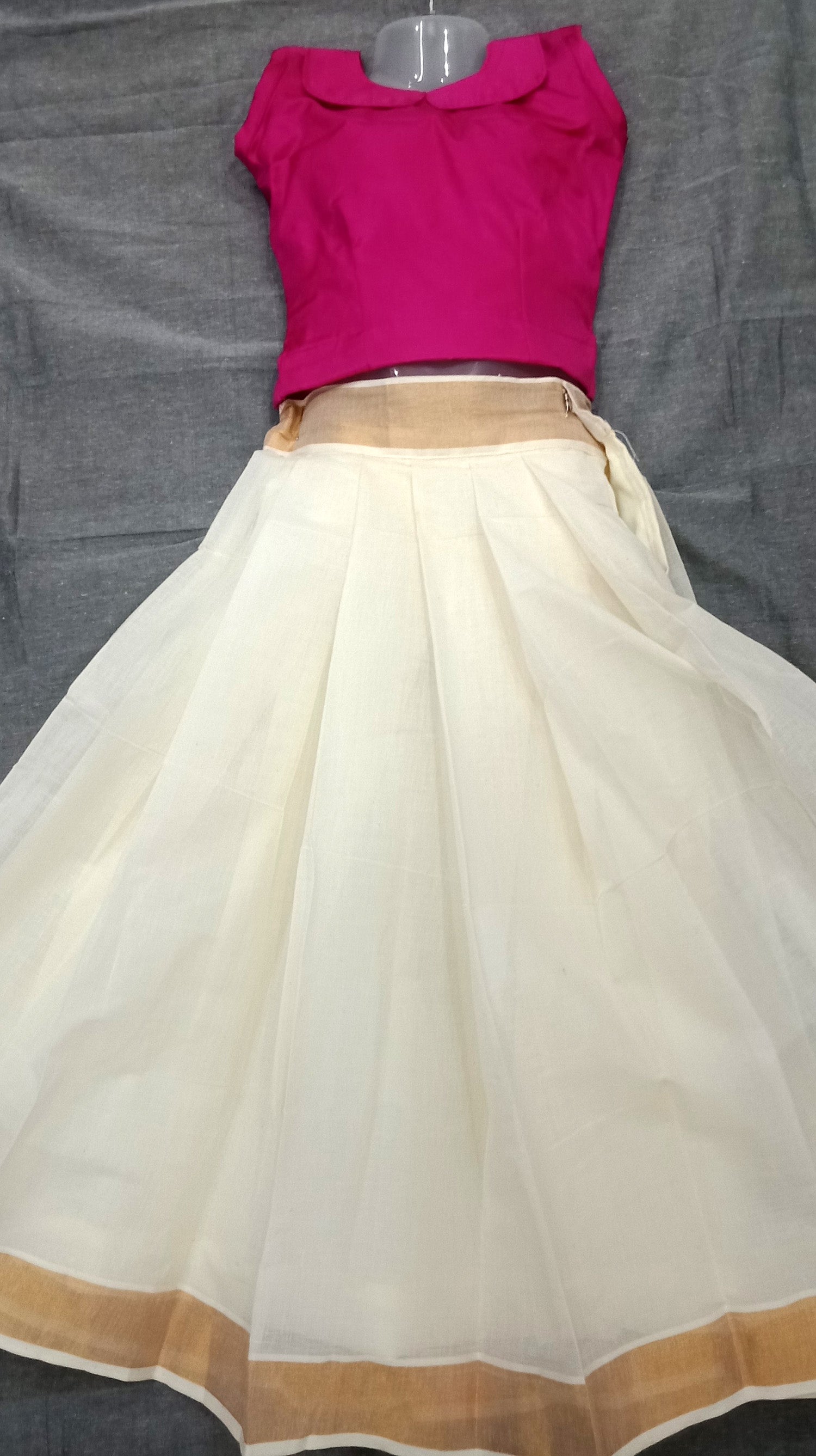 Designer pink top kerala style onam pattu cotton pavada. Top Onam style designer kerala pattu pavada online shopping.