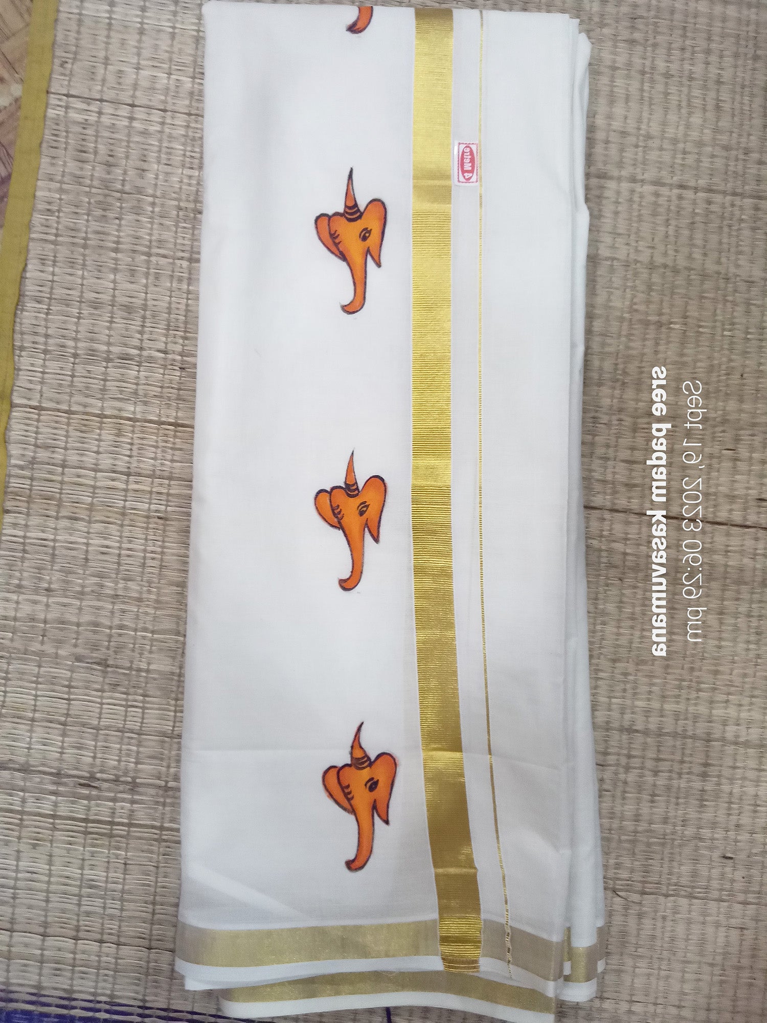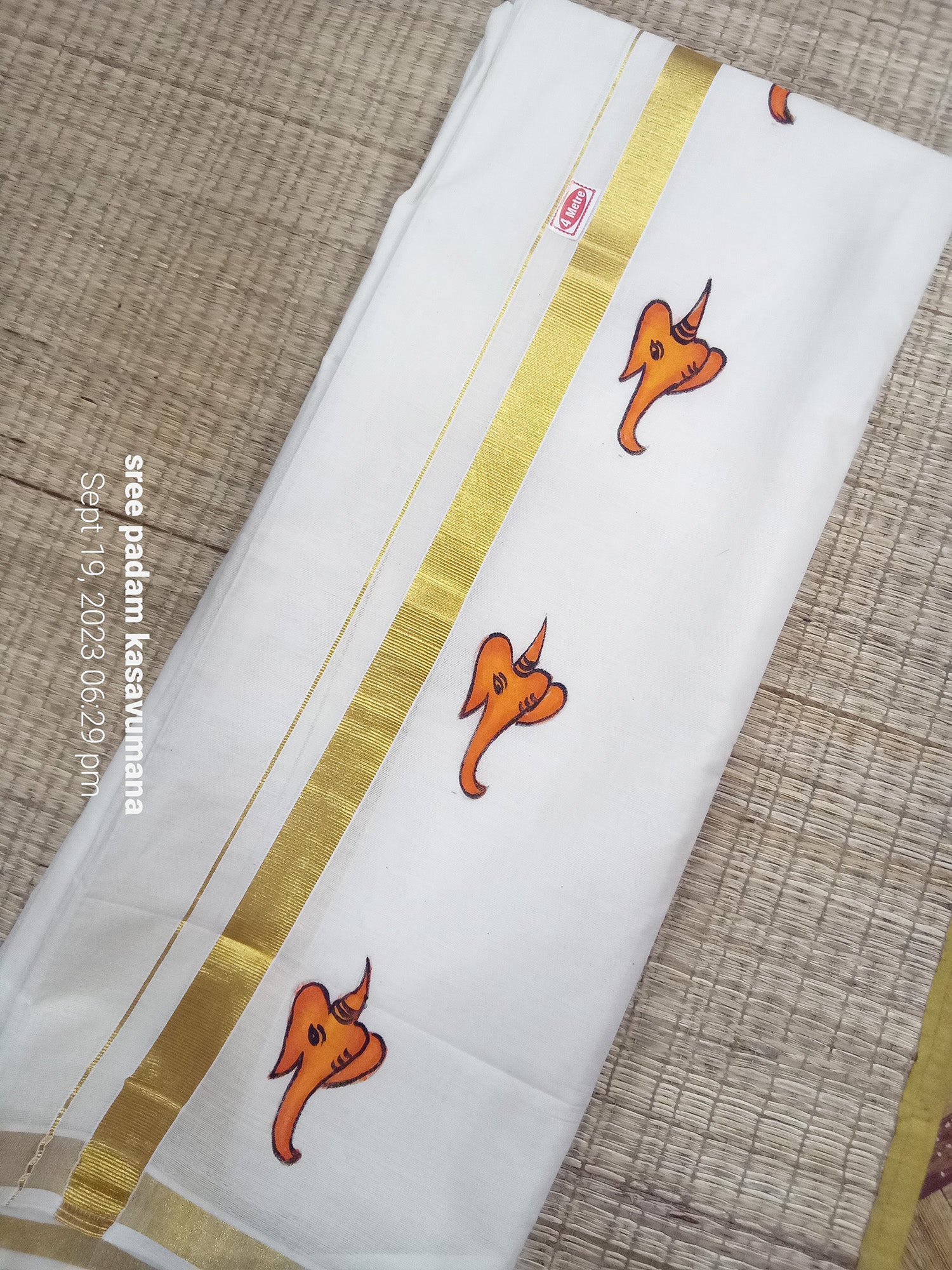 Ganapathi hand mural painting kasavu cotton mundu