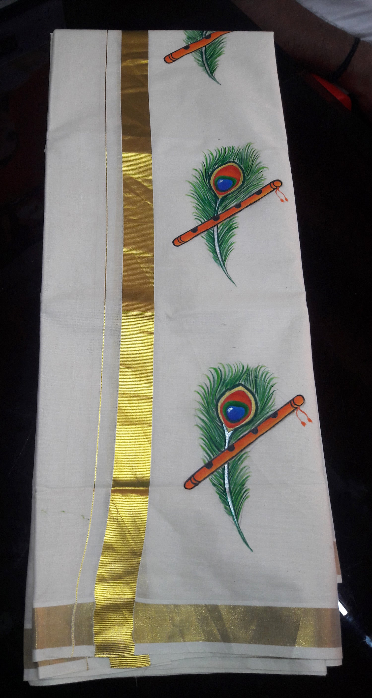Mazhilpeeli hand mural painting kasavu kerala mundu - 4 meter