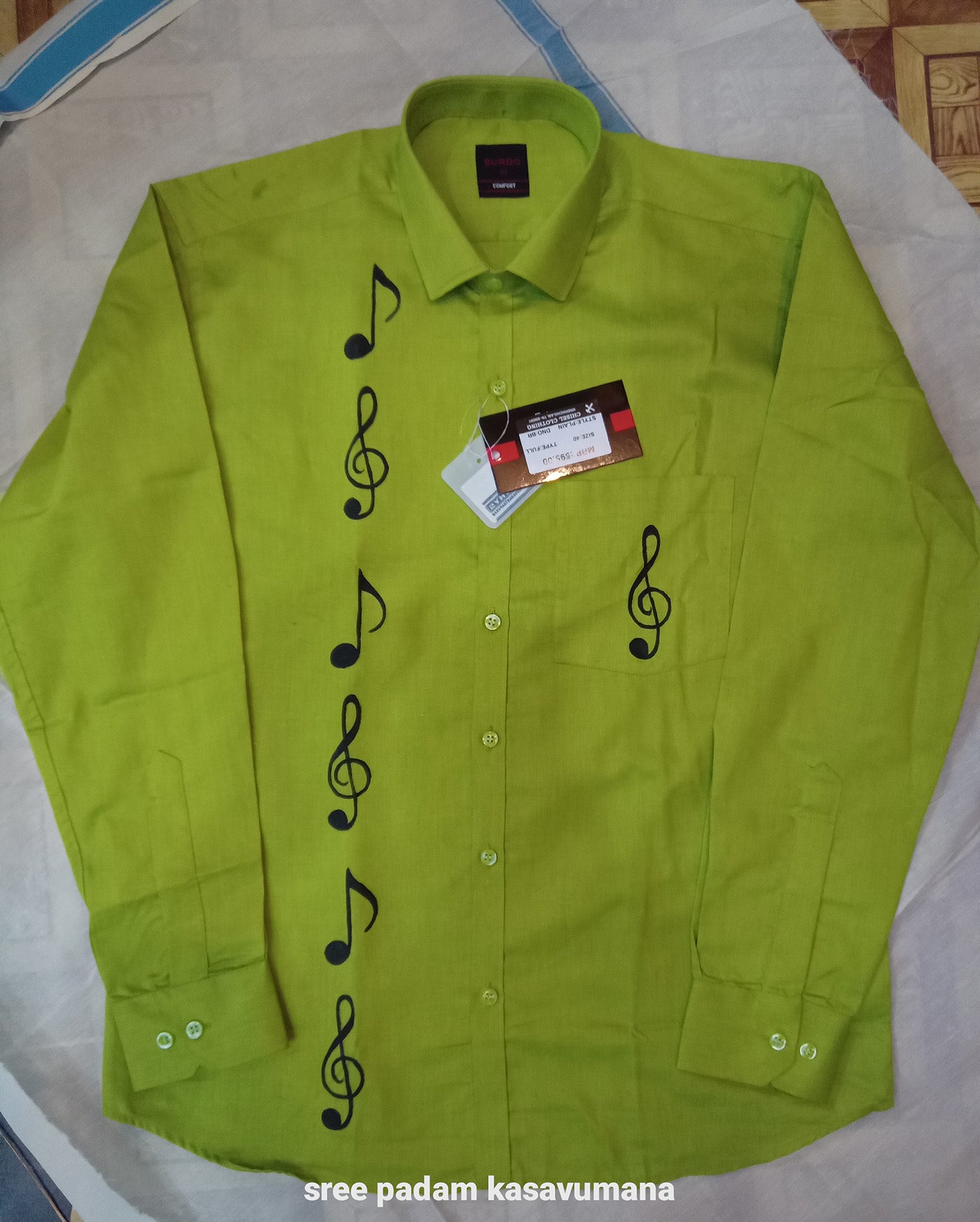 This Rhythm Note Design Hand Painting Green Cotton Shirt combines cool and comfort in one fashionable package. Crafted from 100% cotton, the shirt features a unique rhythm note design hand painting for a look that stands out during casual occasions. The lightweight fabric is breathable and ideal for all climates, making it the perfect addition to any wardrobe.